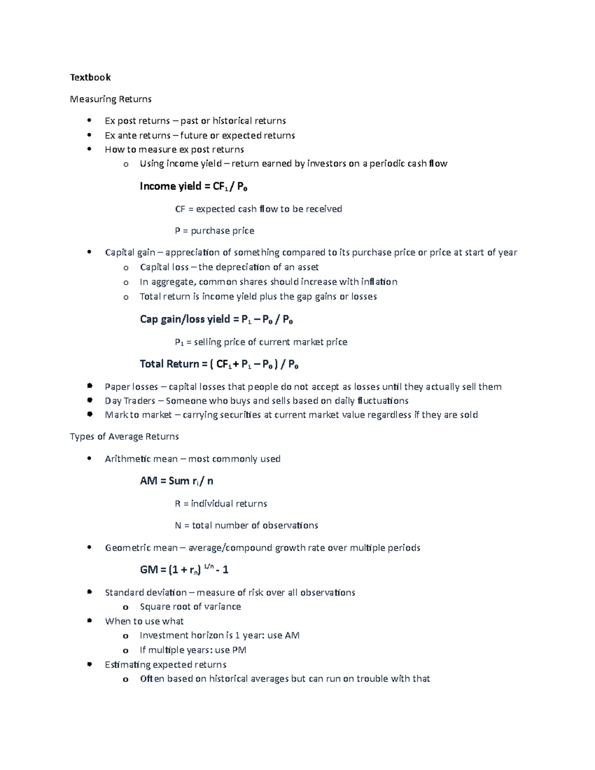 Ch. 8 - Measuring Returns - Textbook Measuring Returns Ex post returns ...