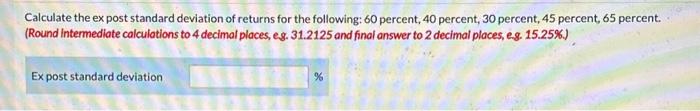 Solved Calculate the ex post standard deviation of returns | Chegg.com