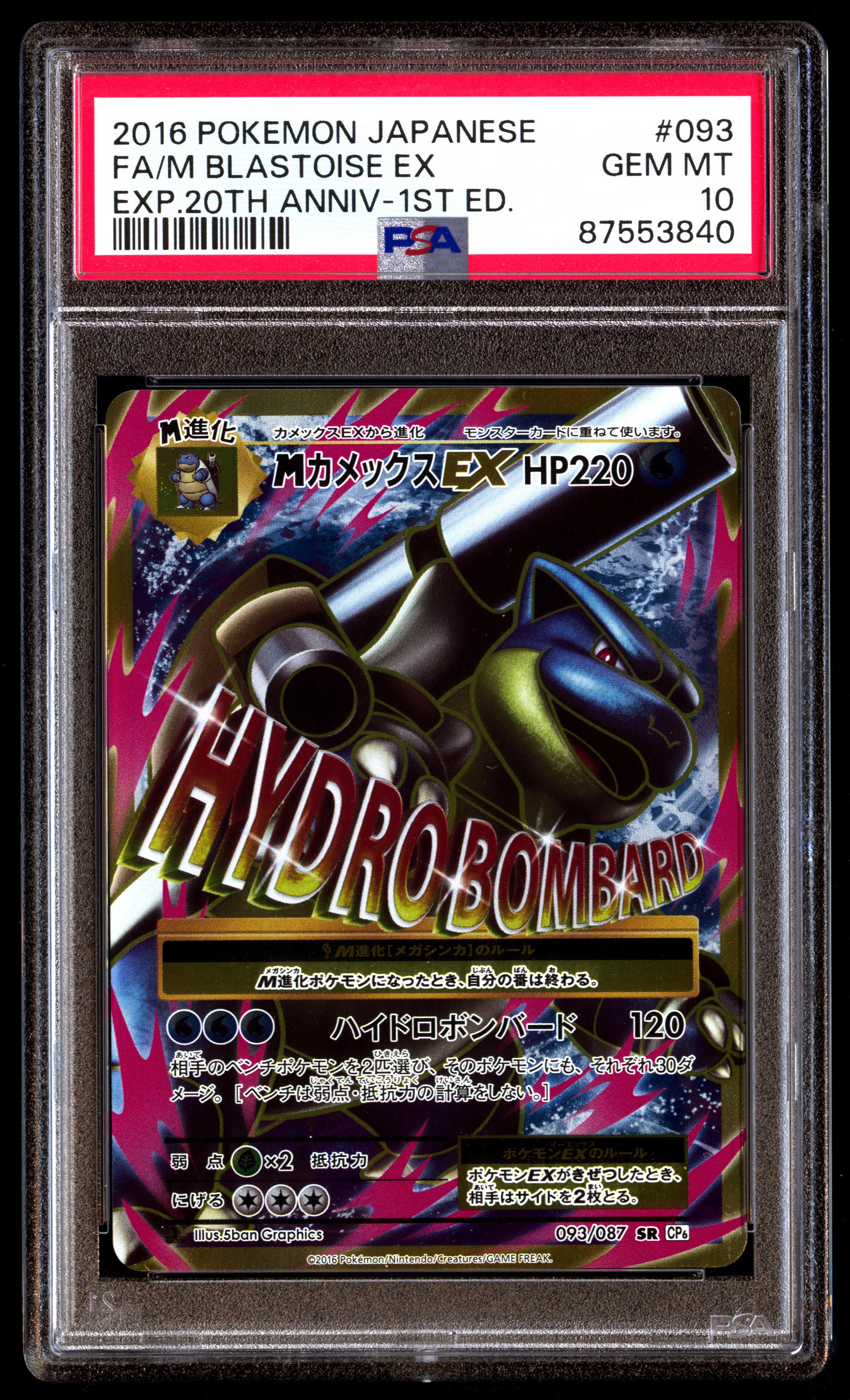 PSA 10 Gem Mint M Blastoise EX 093/087 CP6 20th Anniversary FA 1ED 2016 ...