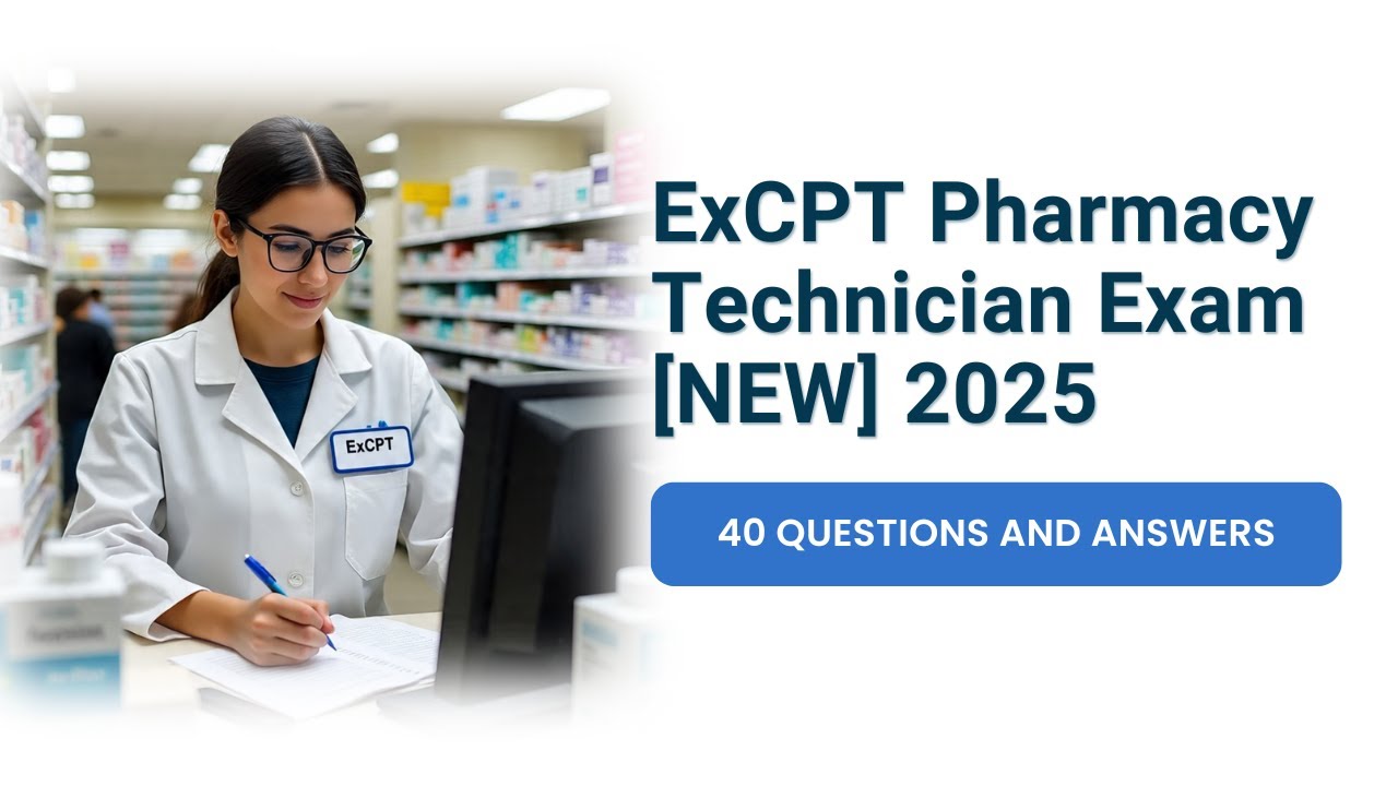 ExCPT Pharmacy Technician Practice Test 2025 [NEW] 40 Questions and ...