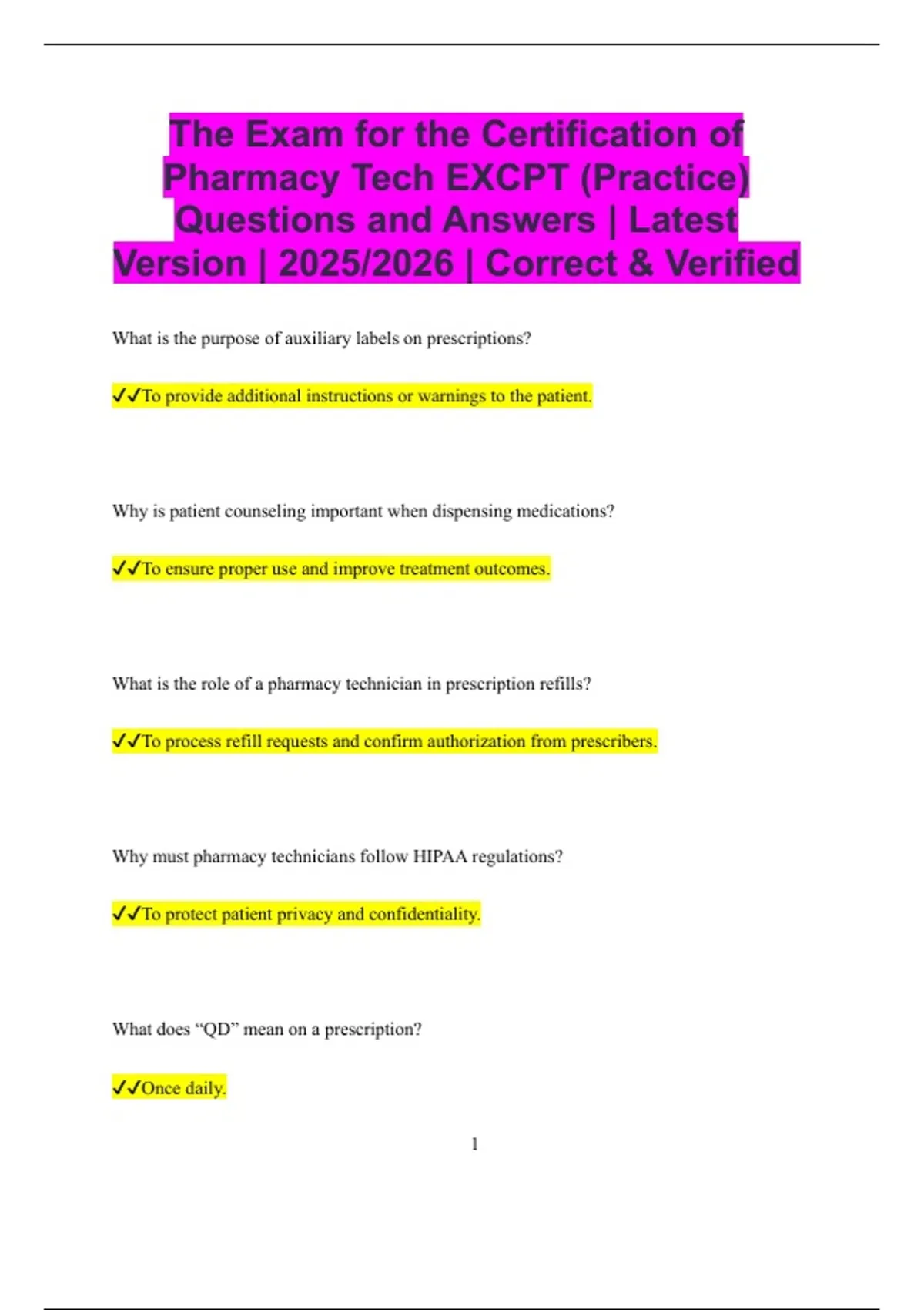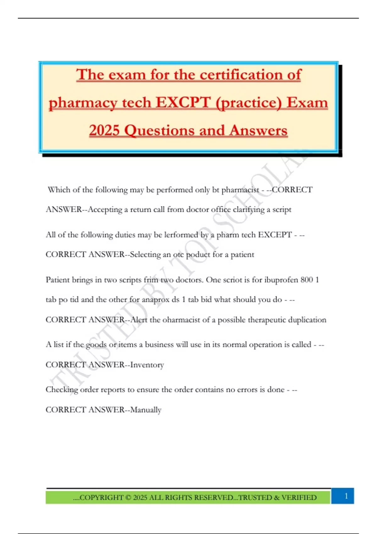 EXCPT PHARMACY TECHNICIAN TEST FINAL EXAM 2025|| ACTUAL EXAM ALL ...