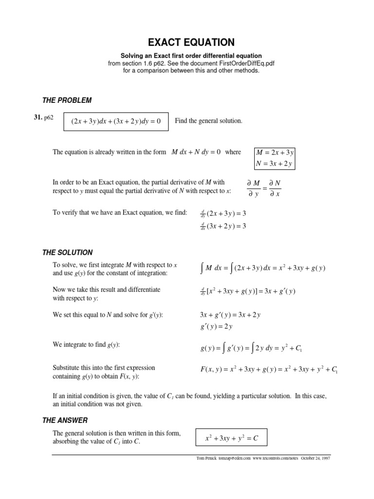Solving Exact Equations in Mathematics: Definition, Examples, | Course Hero
