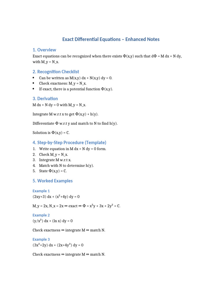 Solving Exact Differential Equations: Examples & Techniques | Course Hero