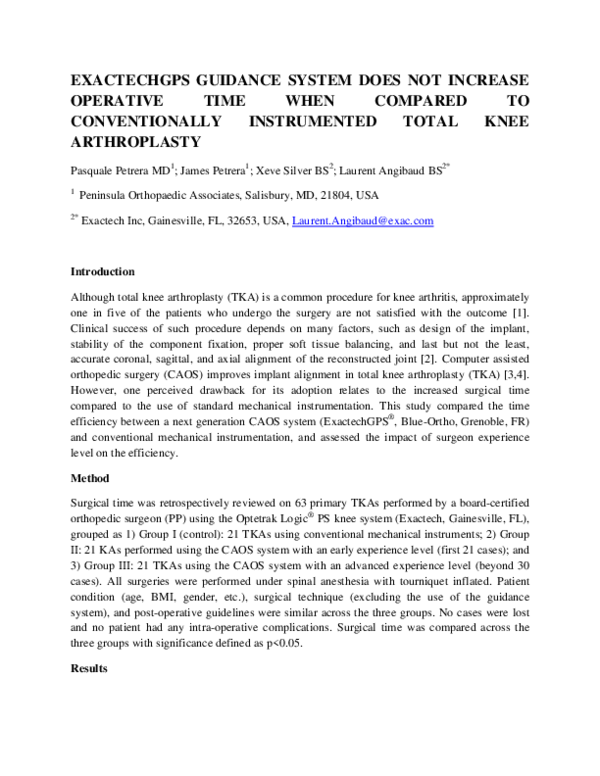 (PDF) Exactechgps Guidance System Does Not Increase Operative Time When ...