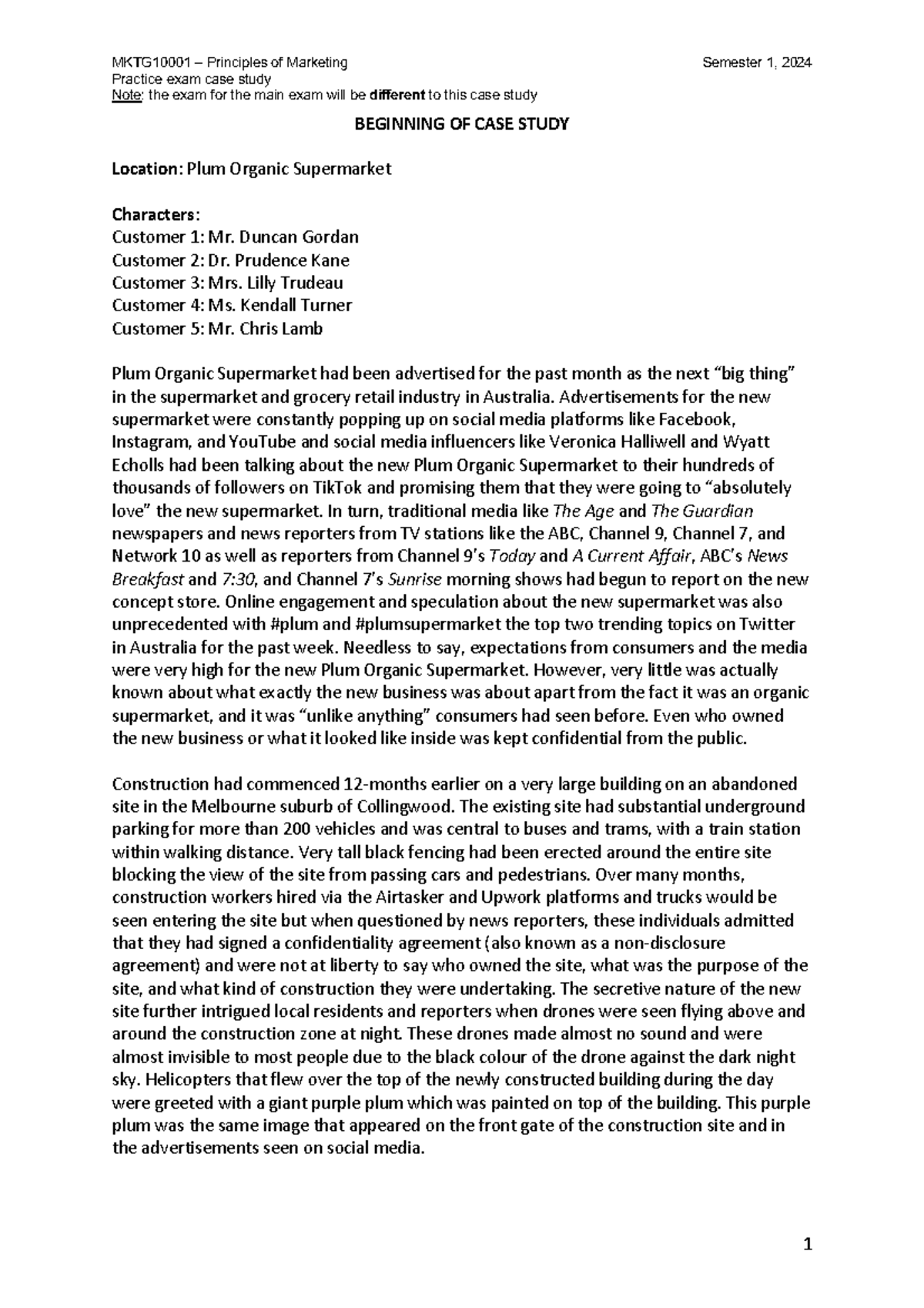 Semester 1 Case Study - Practice exam case study Note: the exam for the ...