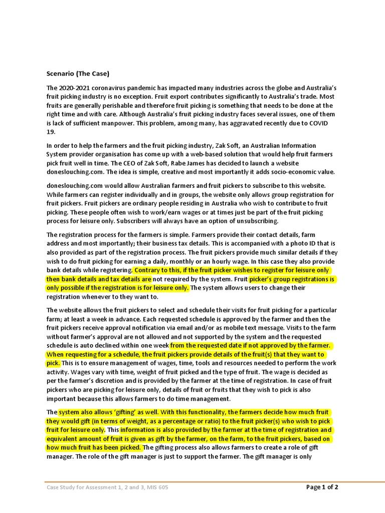 Scenario (The Case) : Case Study For Assessment 1, 2 and 3, MIS 605 ...