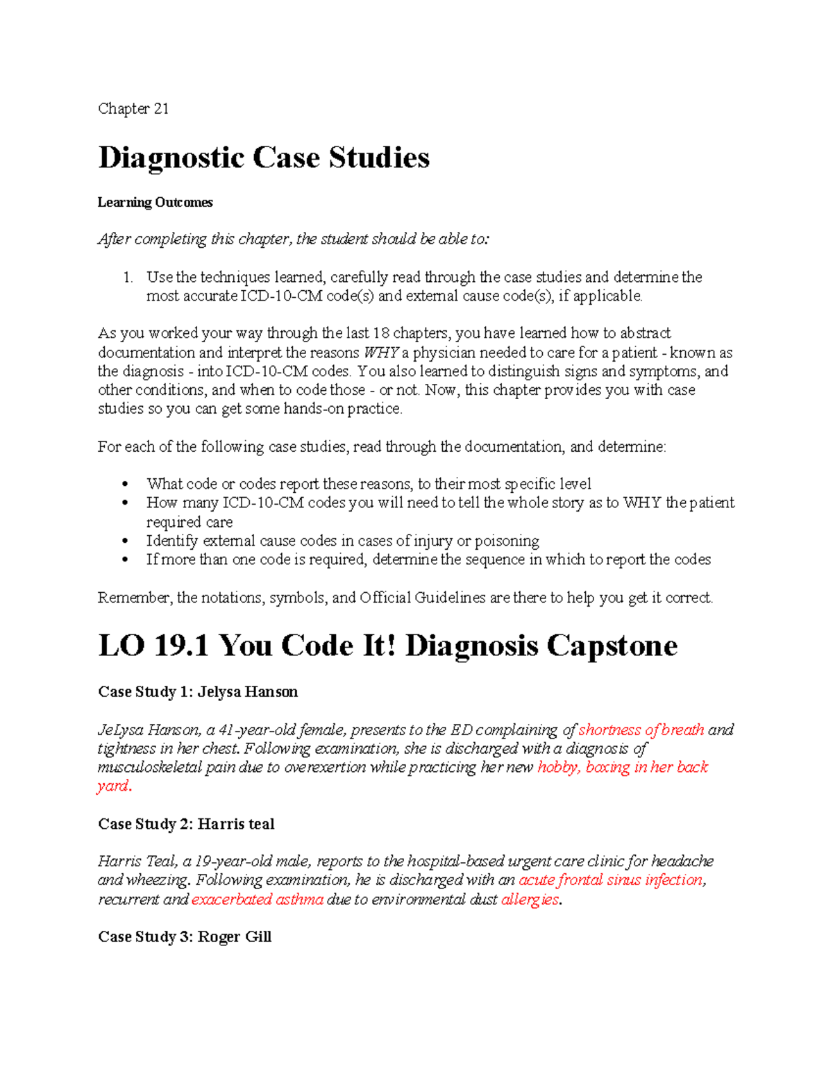 Final Exam Case Studies: Chapter 21 Learning Outcomes - Studocu