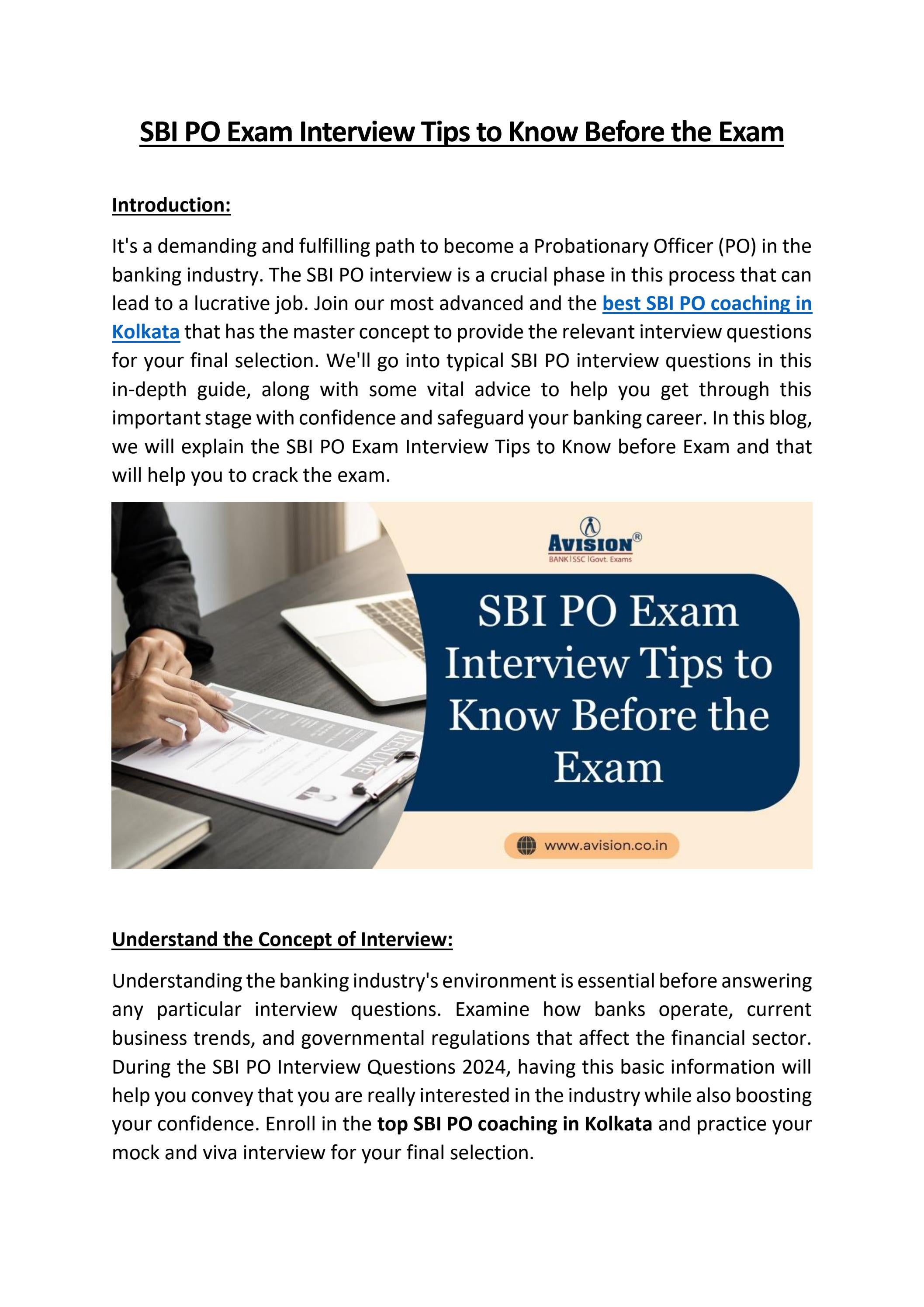 SBI PO Exam Interview Tips to Know Before the Exam by avisioncoaching ...