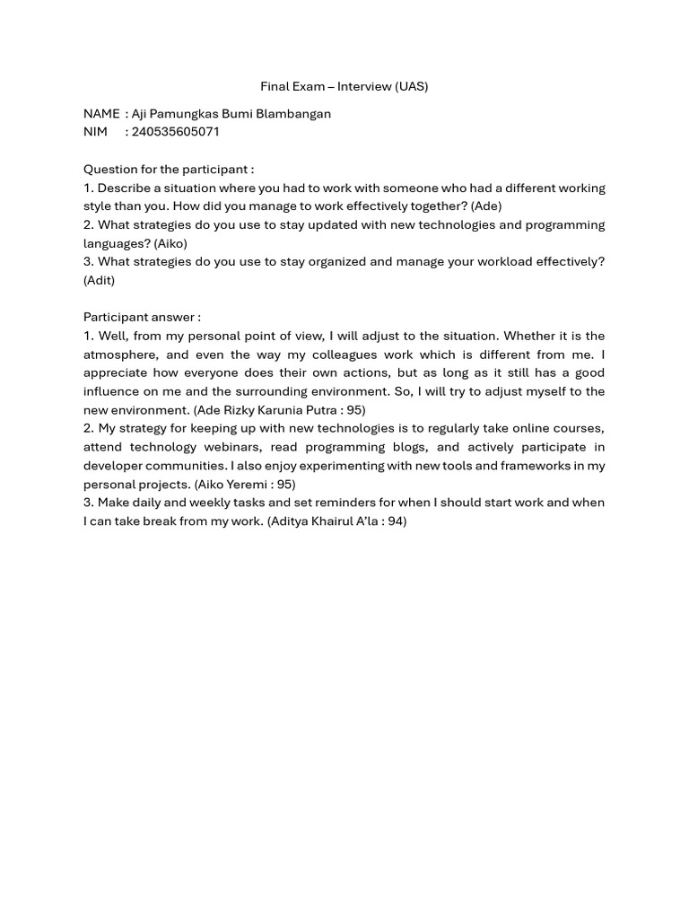 Second Term Exam Interview Transcript | PDF