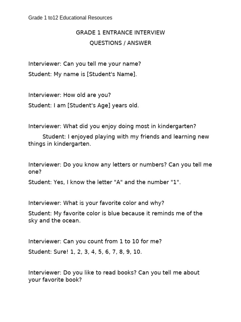 Grade 1 Interview Questions & Answers | PDF
