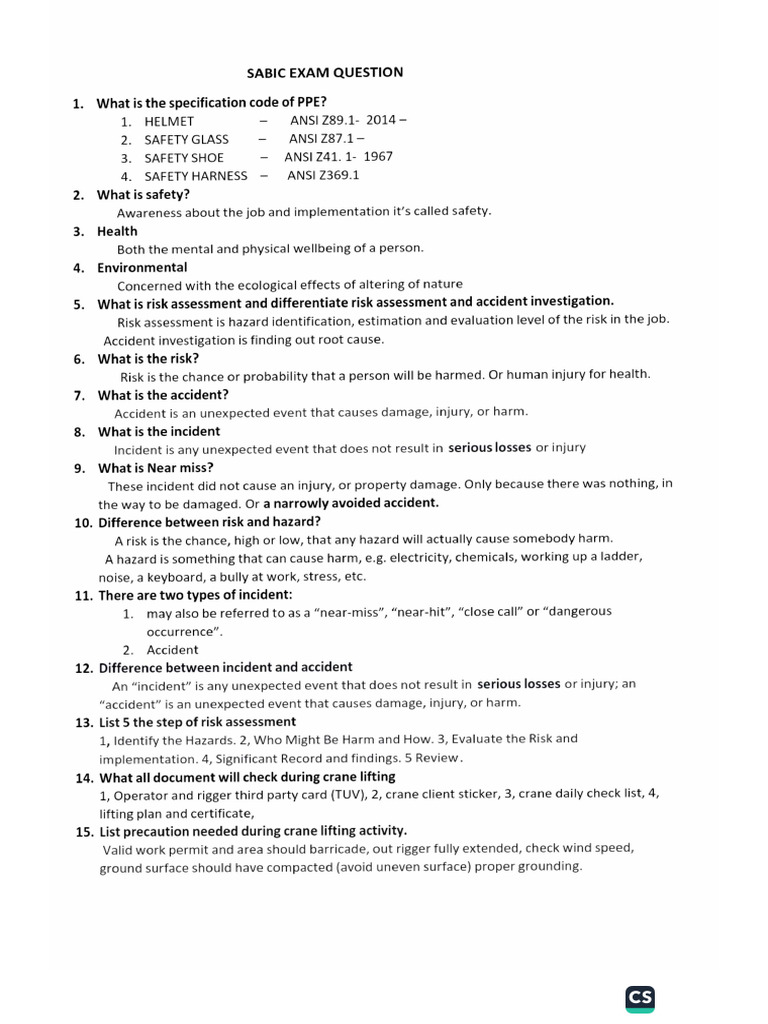 Associate Safety Professional (ASP) Exam Interview Questions and ...