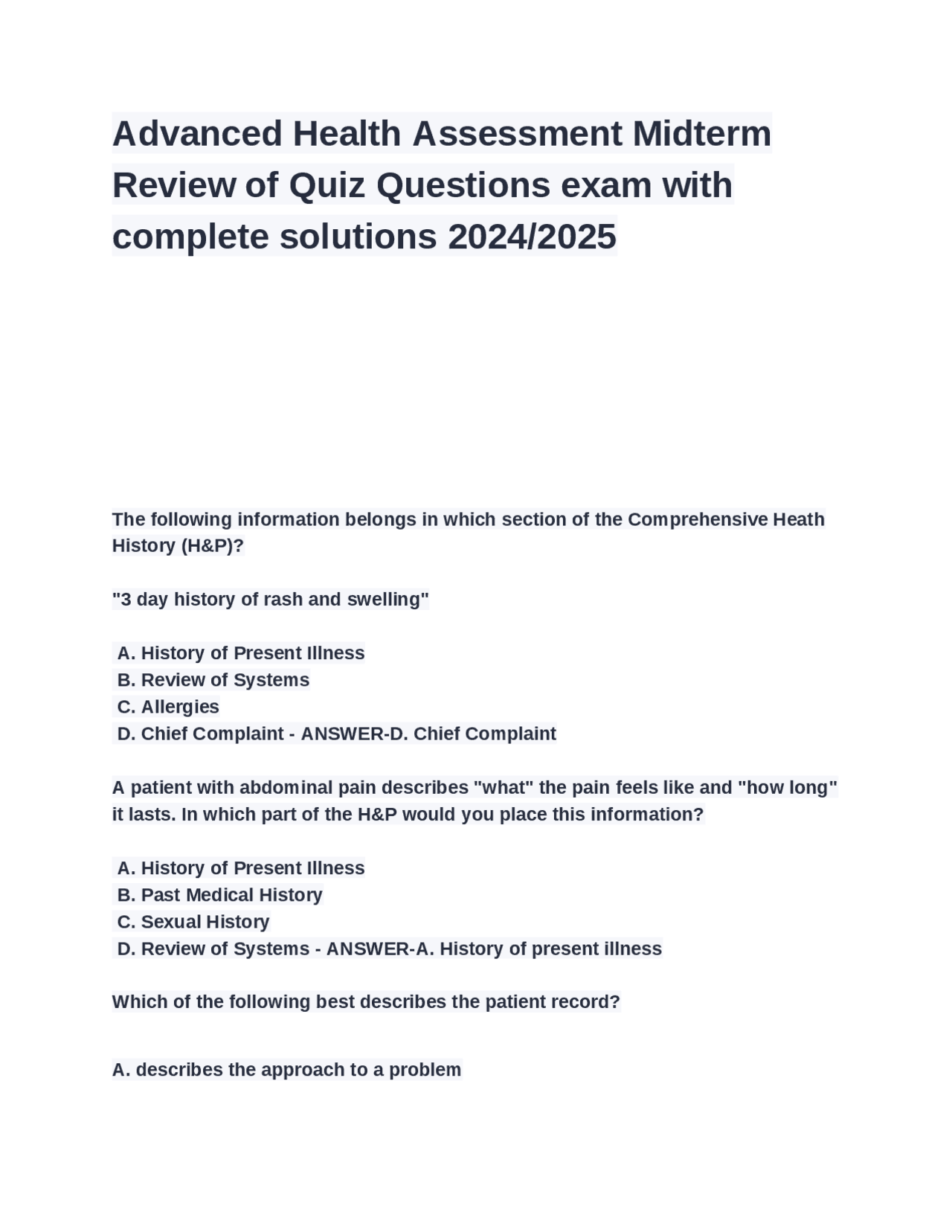 CRNA Interview Exam 2025 Questions and Answers - CRNA - Stuvia US