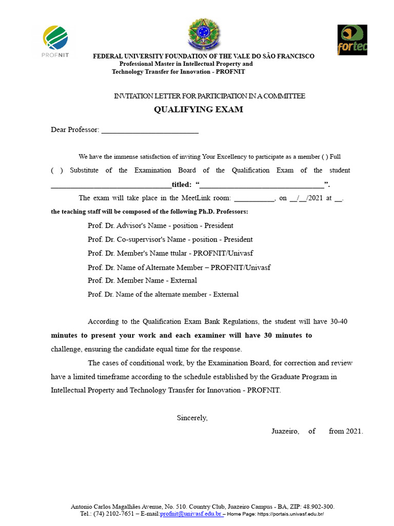 Template Form For Updated Invitation Letter For Qualification Exam Jury ...