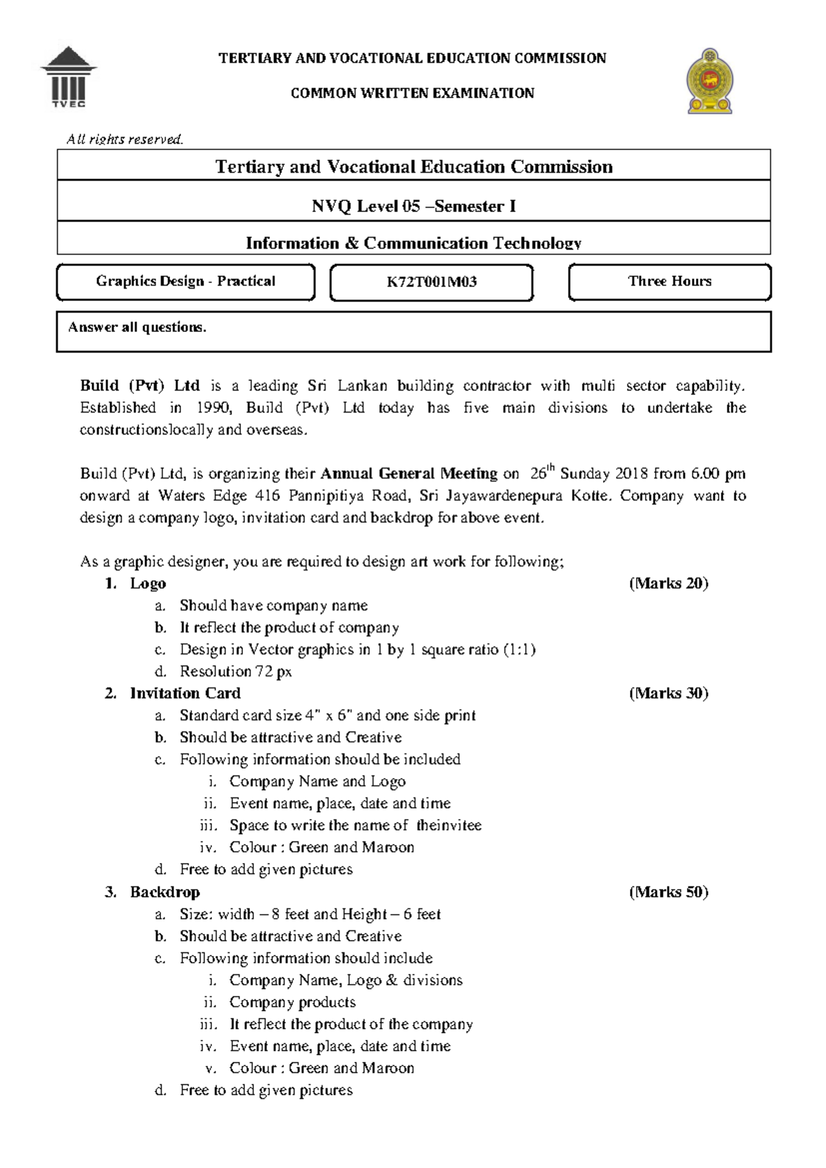 Graphics Design Practical Exam K72T001M03 - Logo, Invitation & Backdrop ...