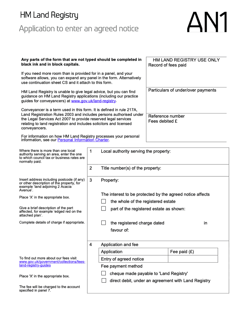 Fillable Online Fillable Form AN1 hm land registry application to enter ...