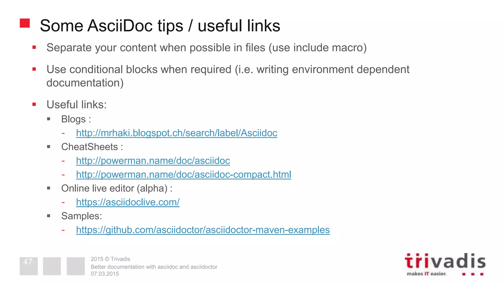 Better documentation with asciidoc and asciidoctor | PPT