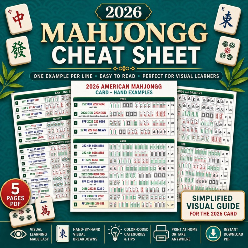 2026 Mahjong Cheat Sheet Printable, American Card Hands Visual Guide ...