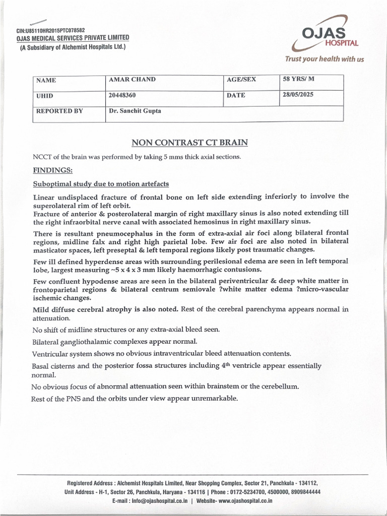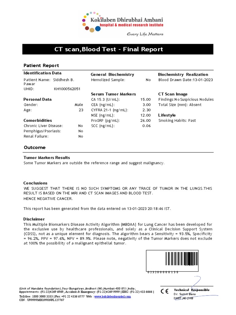 Negative Cancer: CT Scan and Blood Test Report for Siddhesh B. Pawar ...