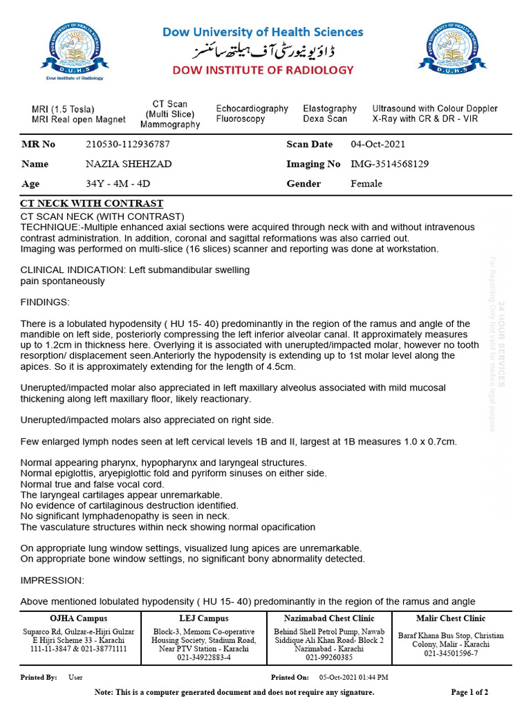 CT Scan Result Sample Template | PDF | Radiology | Ct Scan