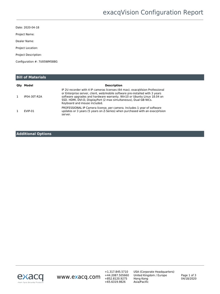 Exacqvision Configuration Report | PDF | Windows 10 | Server (Computing)