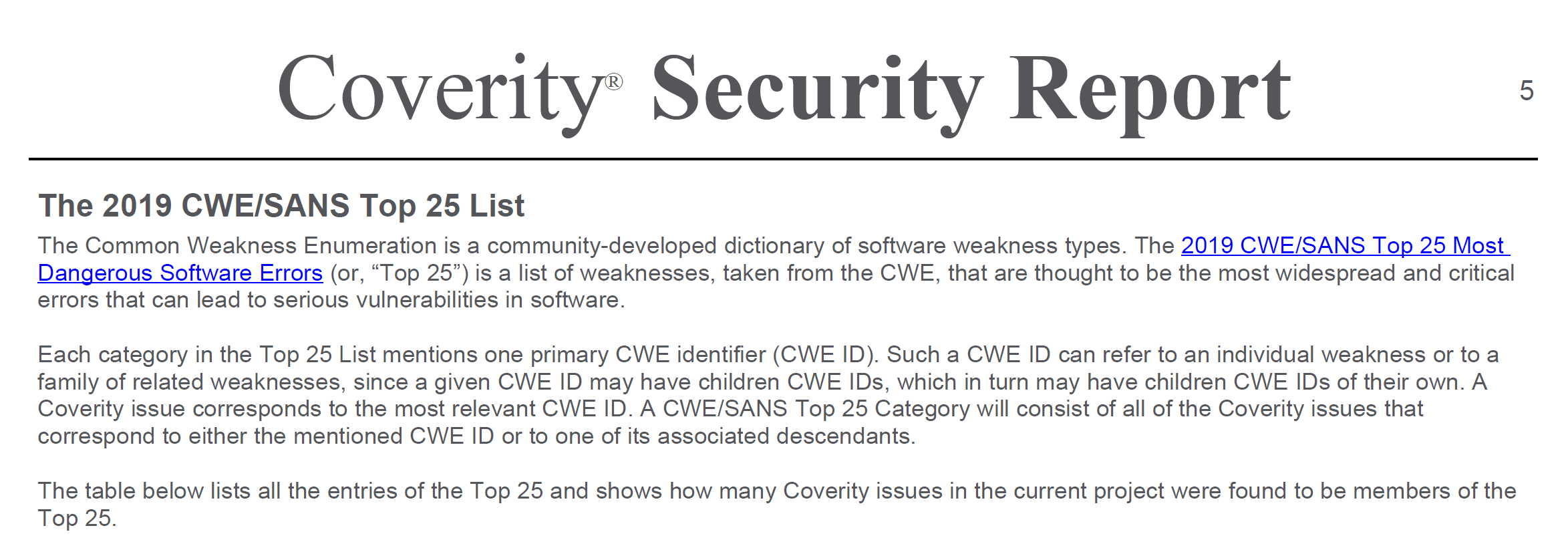 Coverity Coverage For Common Weakness Enumeration (CWE)