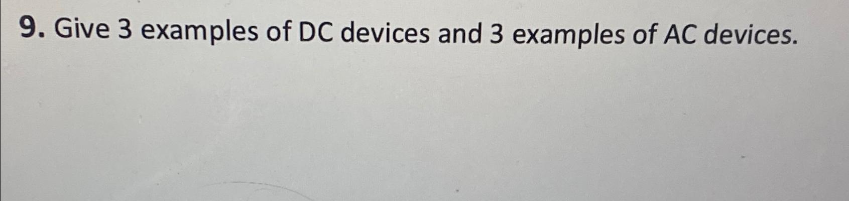 Solved Give 3 examples of DC devices and 3 examples of AC | Chegg.com