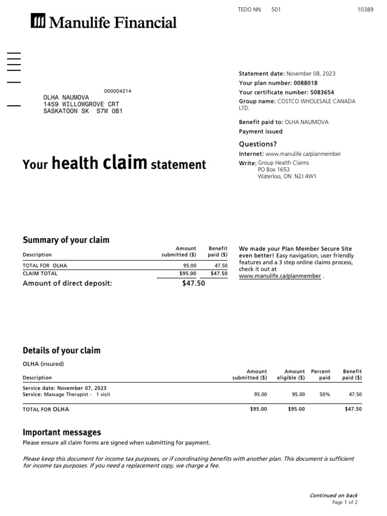 Network Health EOB Template - Sample | PDF | Health Sciences | Medicine
