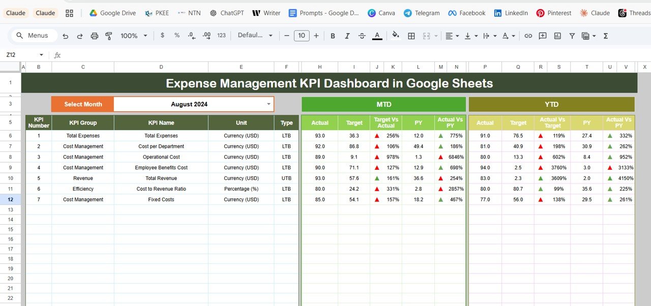 Expense Management KPI Dashboard in Google Sheets - Neotech Navigators