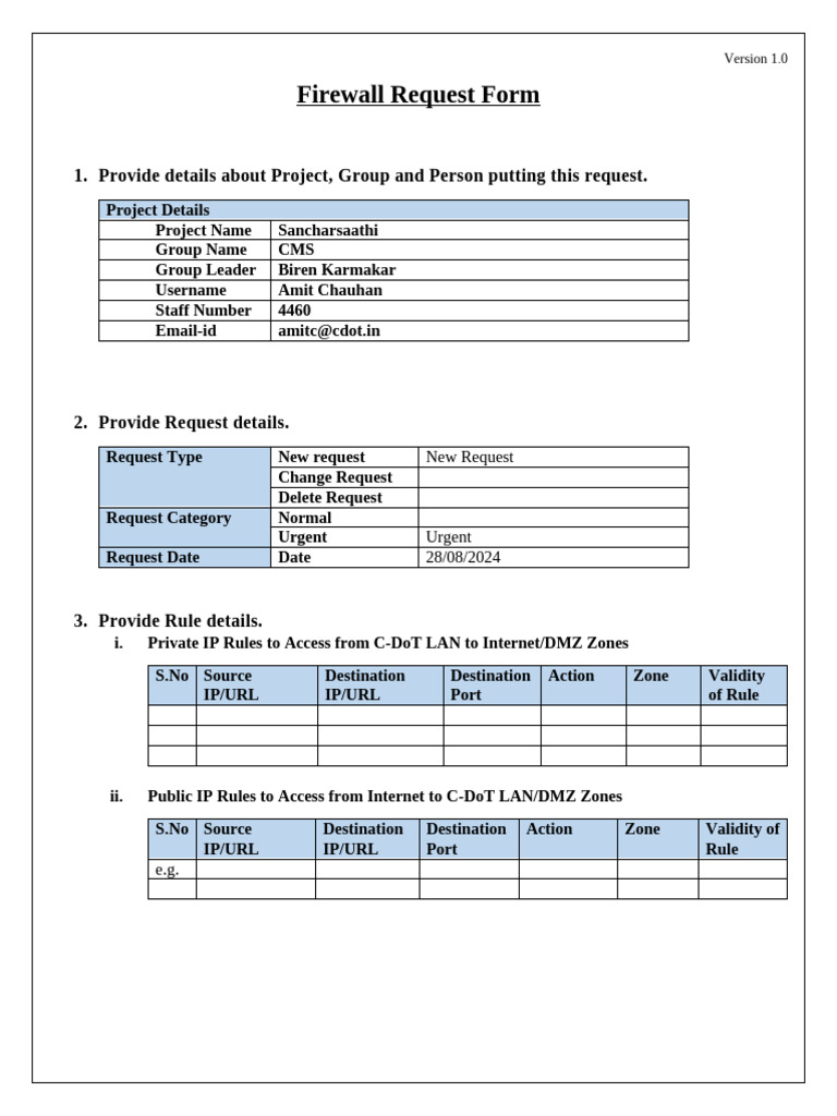 Firewall Rule Entry Request Form (For Reference Purpose Only)