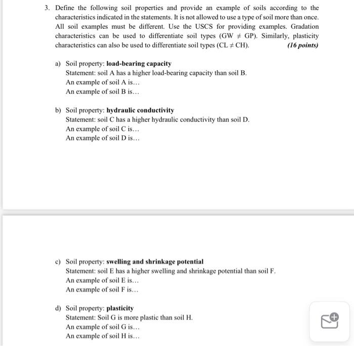 Solved 3. Define the following soil properties and provide | Chegg.com