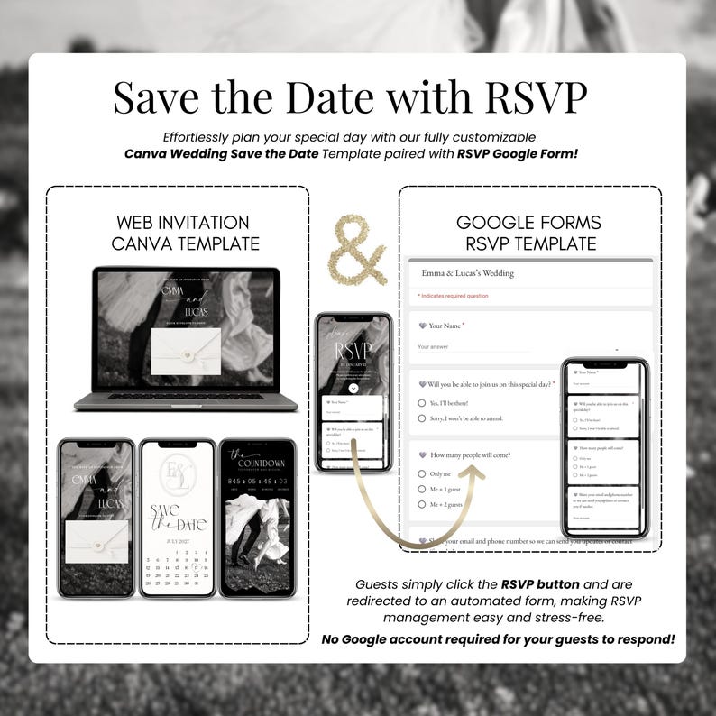 Save the Date Wedding Invitation Website With RSVP, Editable Monogram ...