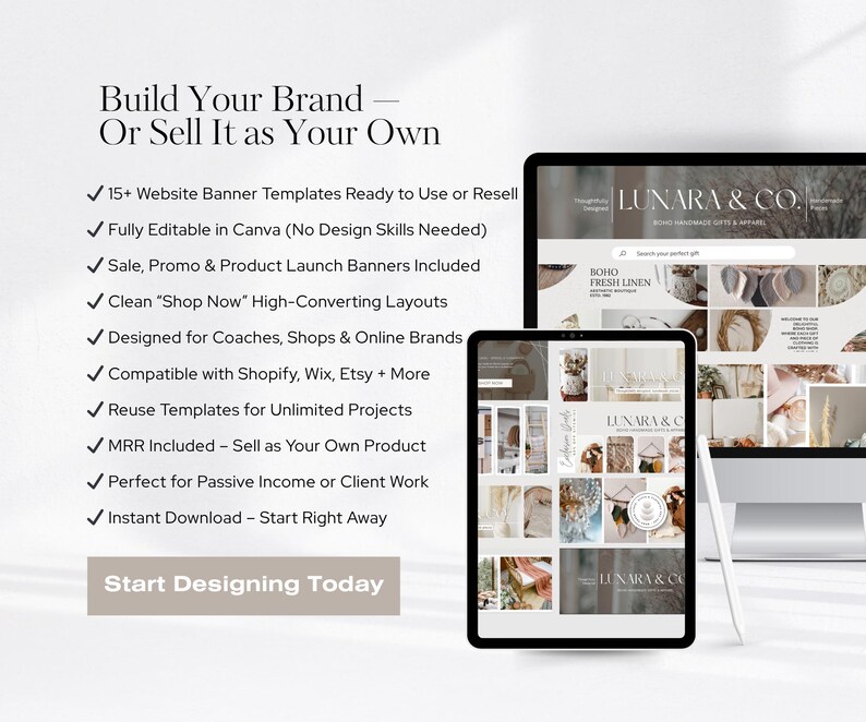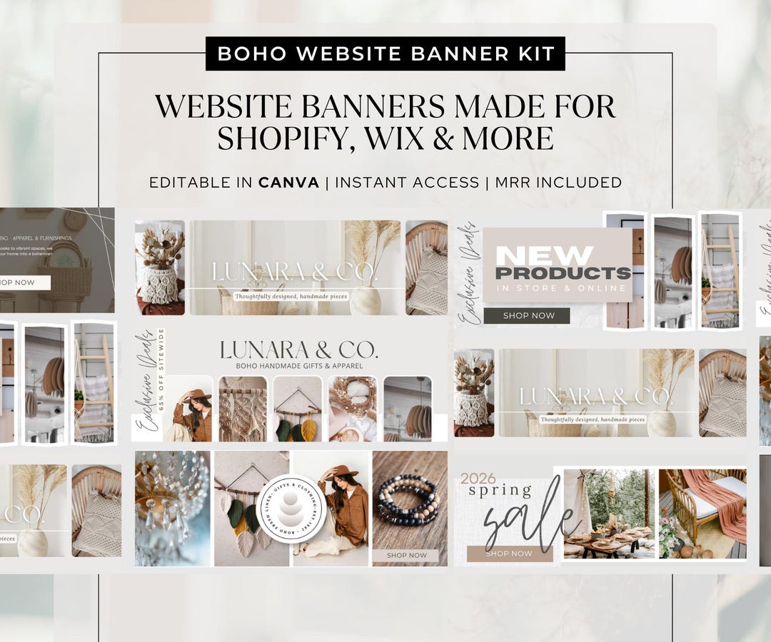 Wix, Shopify Website Template Banner Editable Canva Boho Template, MRR ...