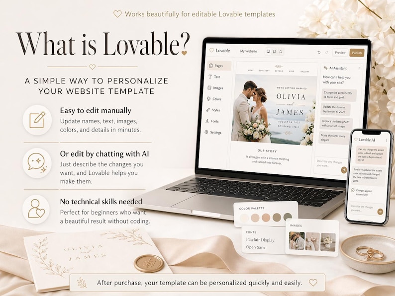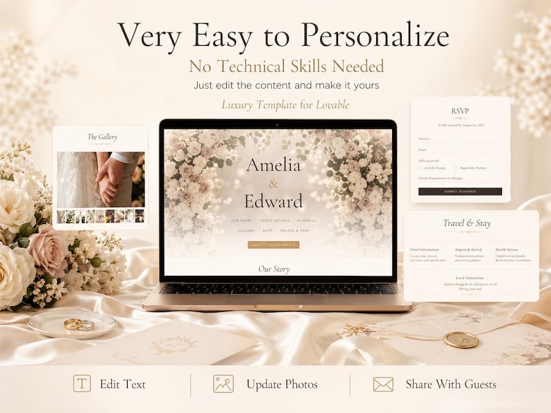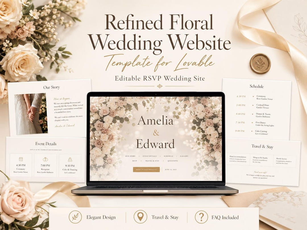 Refined Floral Wedding Website Template for Lovable | Editable RSVP ...