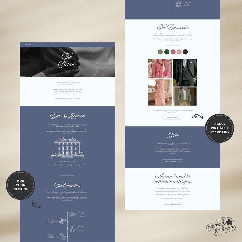 Old Money Wedding Website Template With RSVP, Editable Canva Website ...