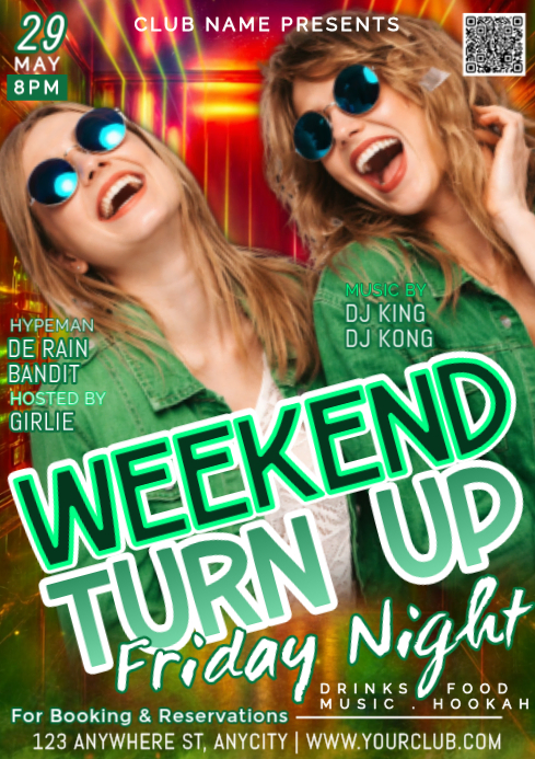 Neon Turn Up Weekend Night Party Invitation Social Media A4 Template ...