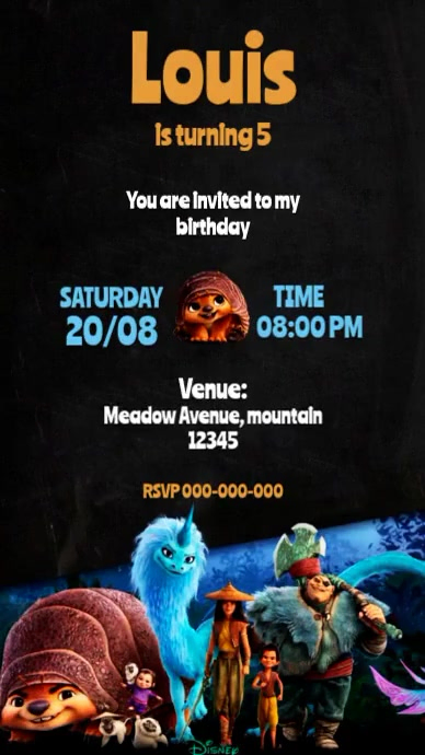 raya and the last dragon Birthday Invitation Digital Display Video ...
