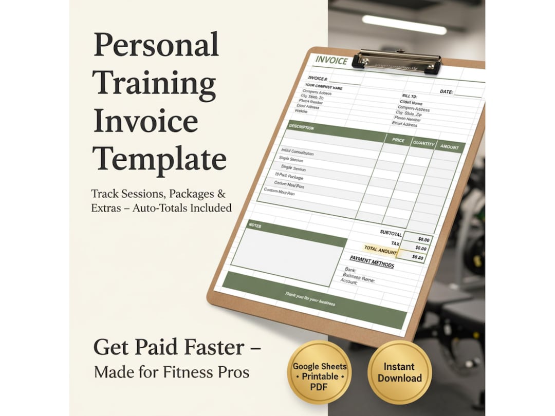 Personal Trainer Invoice Template – Auto Totals, Fitness Coach Billing ...