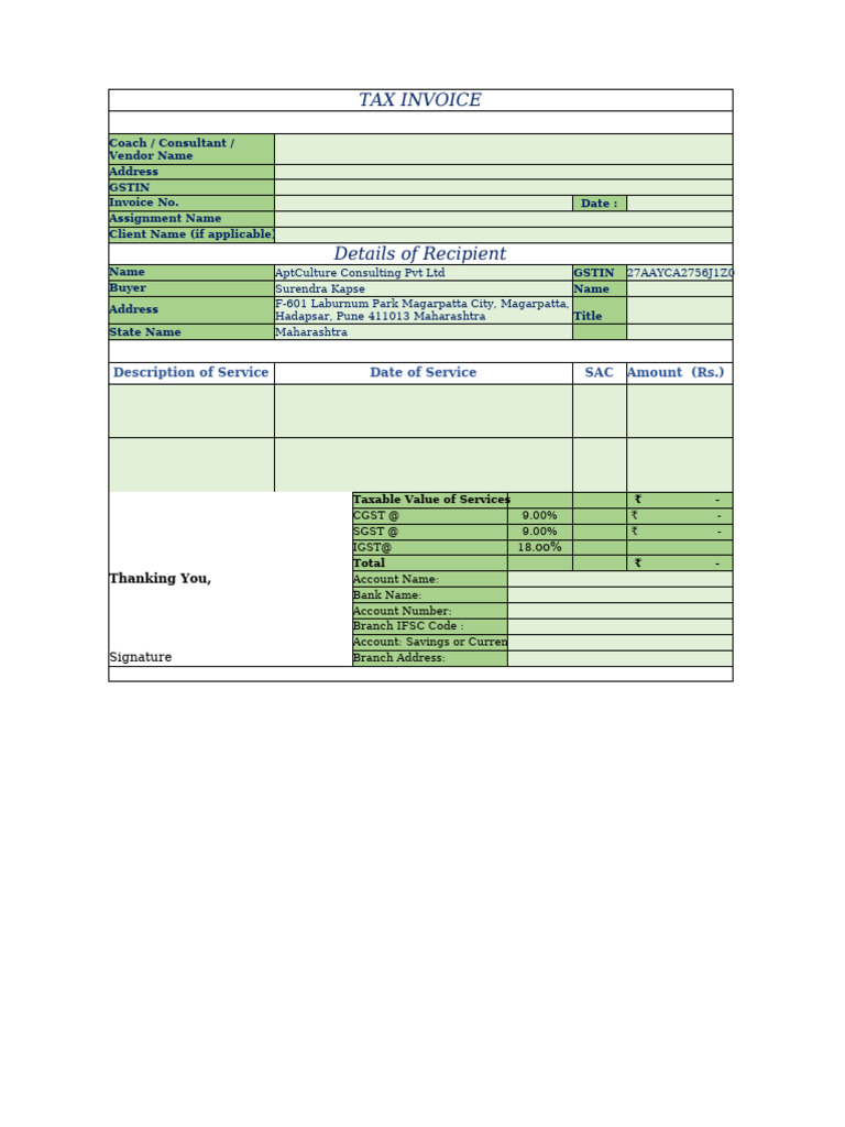 Coaching Invoice Template