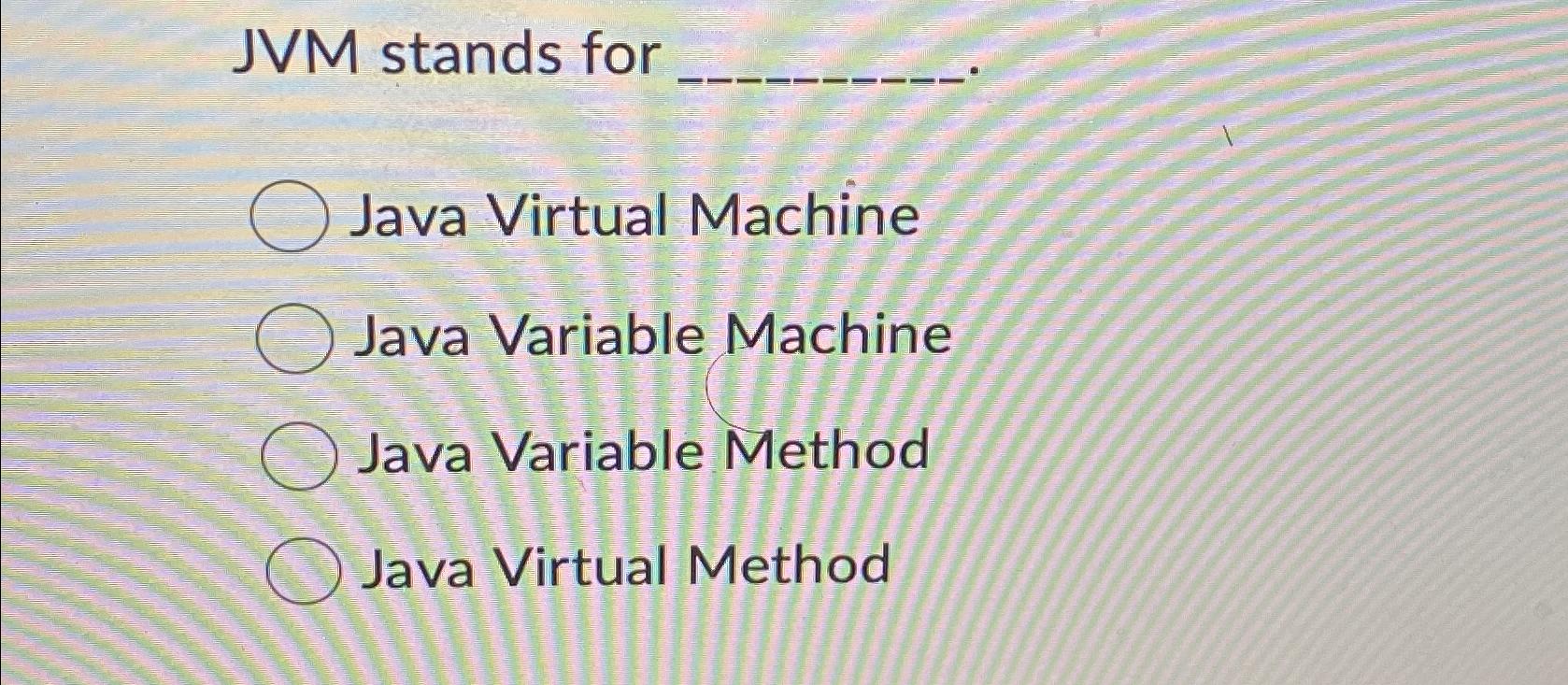 Solved JVM stands forJava Virtual MachineJava Variable | Chegg.com