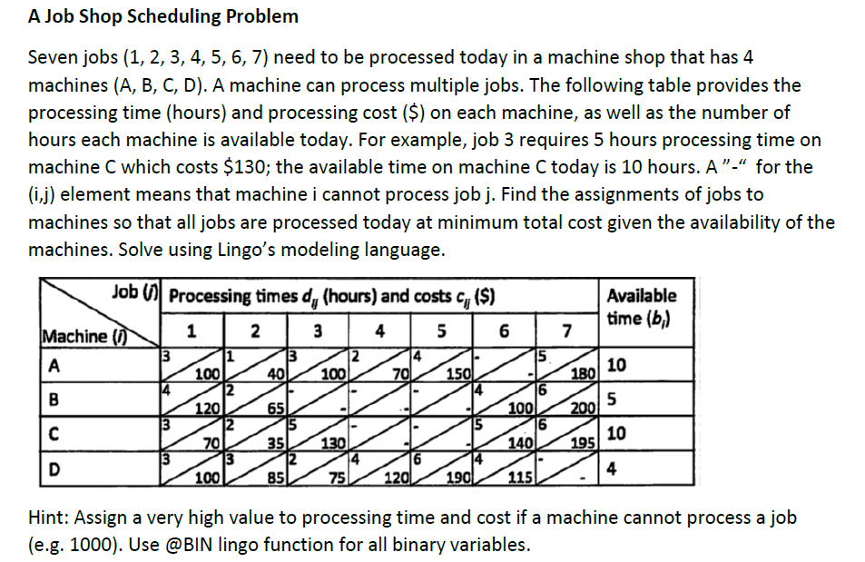 A Job Shop Scheduling Problem Seven jobs (1, 2, 3, 4, | Chegg.com