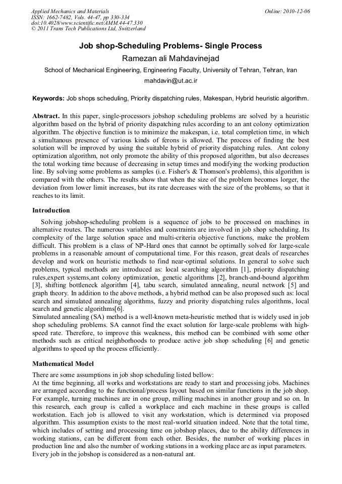 Job Shop Scheduling Problem - An Overview | PDF | Mathematical ...