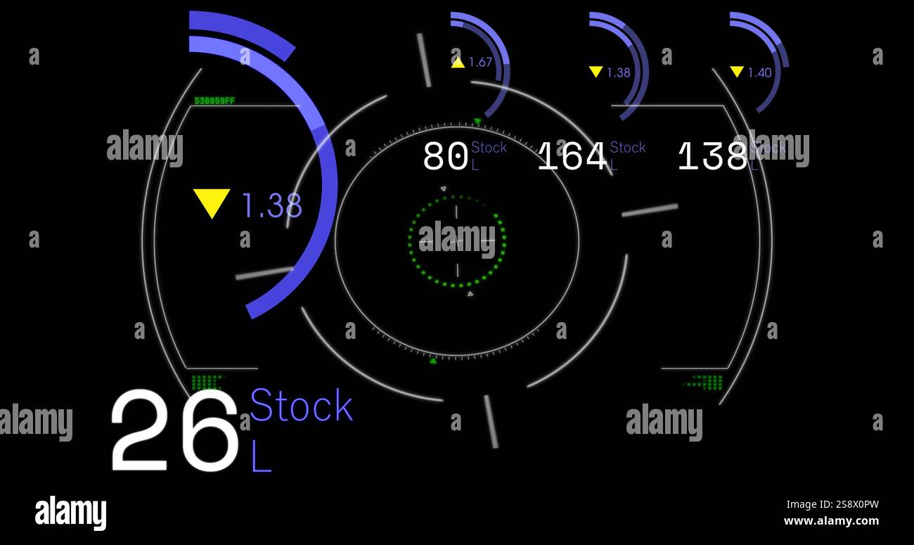 Stock limit data visualization image with circular graphs and numerical ...