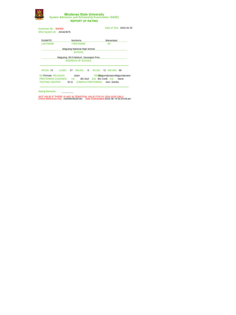 MSU SASE Report for Nurfarina Dumato | PDF