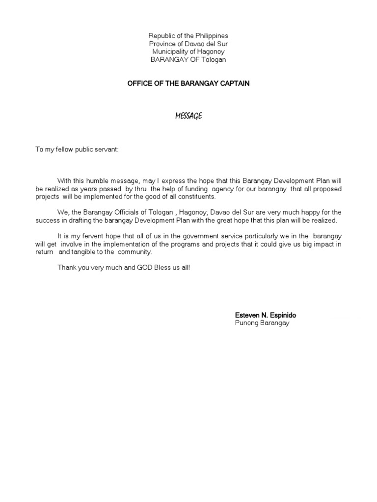 Comprehensive Barangay Development Plan sample - Annex 5 ...