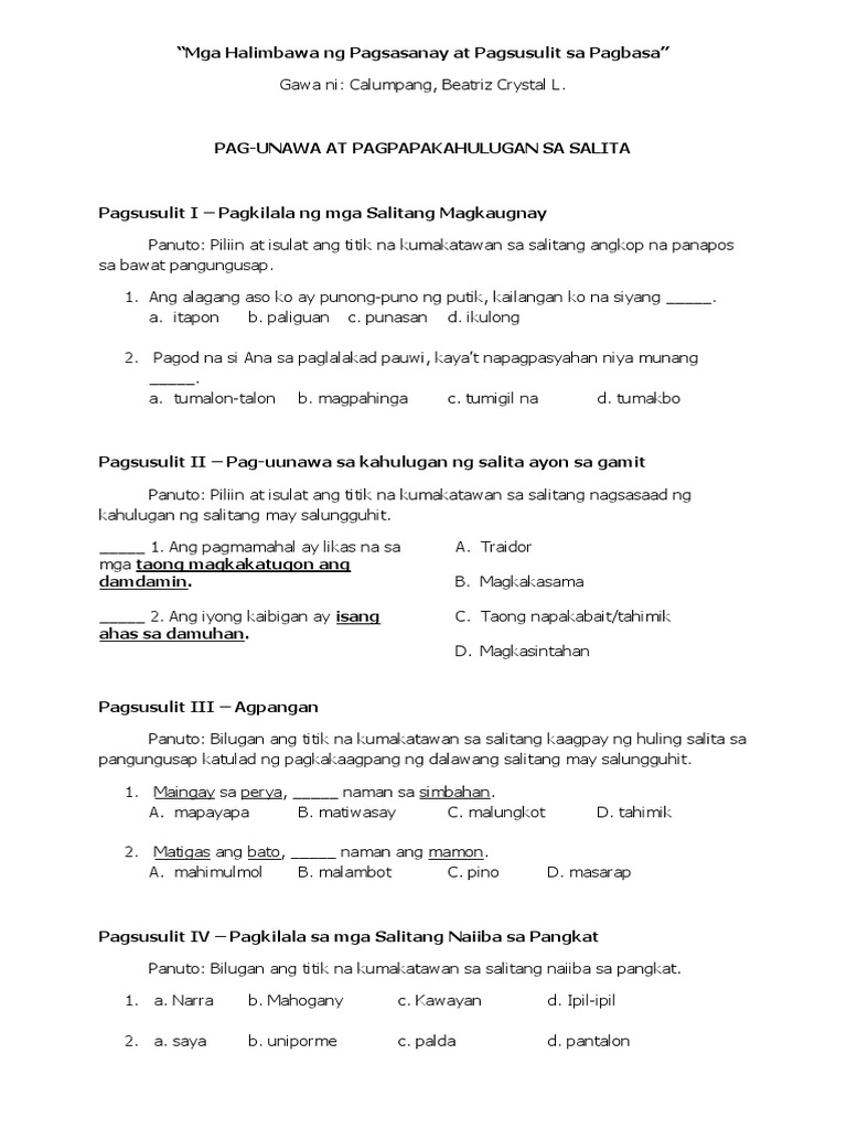 Halimbawang Pagsusulit Sa Filipino | PDF