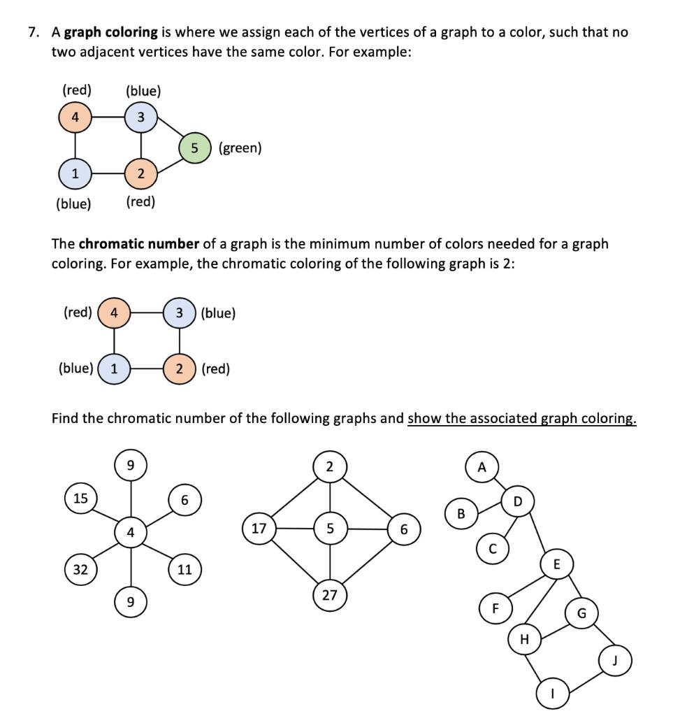 Solved 7. A graph coloring is where we assign each of the | Chegg.com