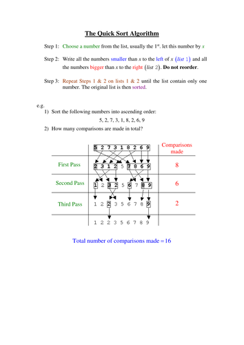 Quick Sort Algorithm Worked Example | Teaching Resources