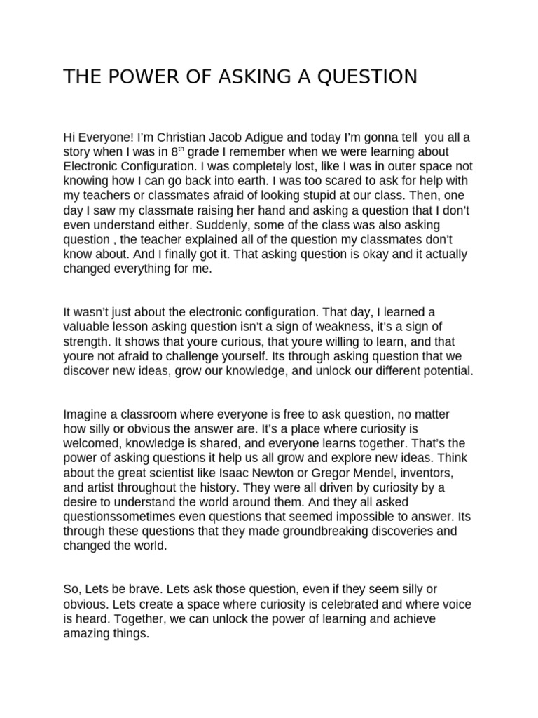 Paragraph on 'The Importance of Asking Questions' - Kidpid