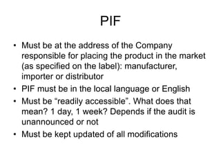 Cosmetics product information file (PIF) | PPTX
