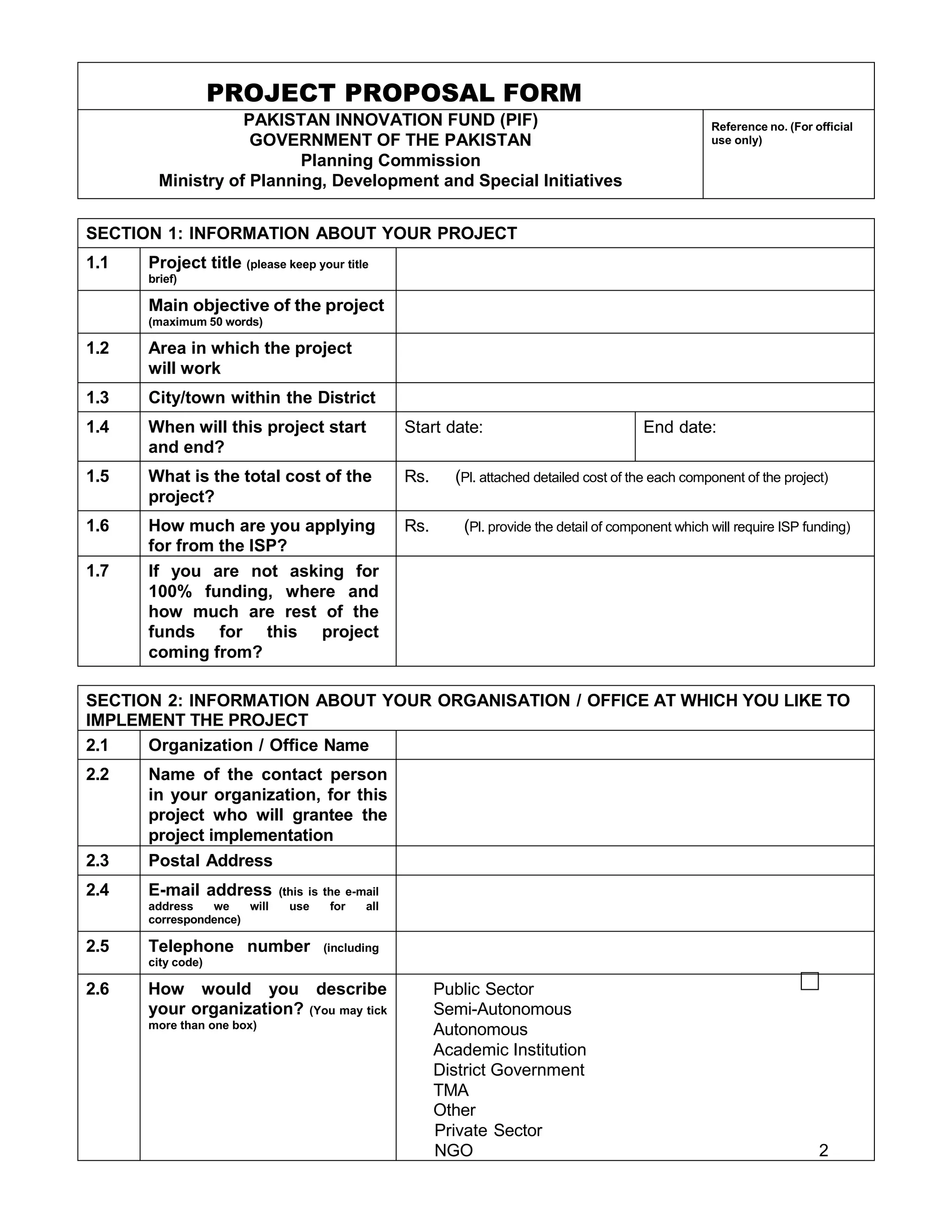PIF Template (Year 1) | PDF